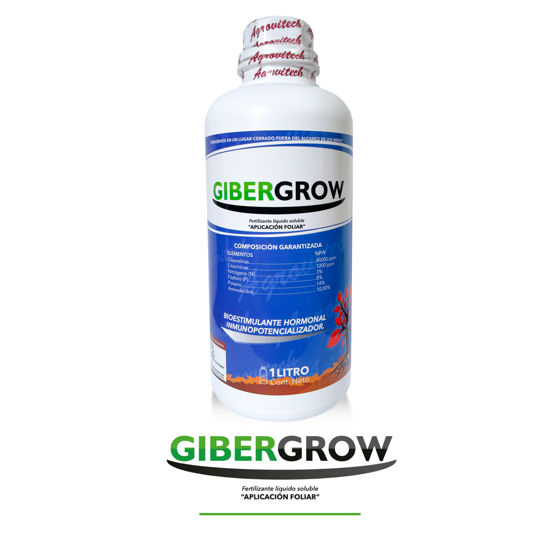 GIBERGROW es un compuesto fitohormonal a base de GA3 potencializado con fósforo, potasio, ácidos orgánicos, aminoácidos, vitaminas, activadores enzimáticos, que promueven una mayor asimilación y mayor sinergia. Este producto tiene una función crítica en el proceso de alargamiento de las células formadas, por lo que su aplicación es efectiva para estimular la tasa de crecimiento en los órganos de la planta.