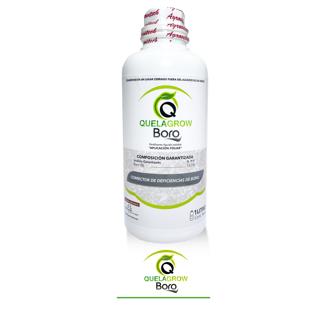BORO QUELAGROW, promueve la división y elongación apropiada de las células, la fuerza de la pared celular, la polinización, floración, producción de las semillas; regula el transporte de azúcar, metabolismo de los carbohidratos y proteínas.